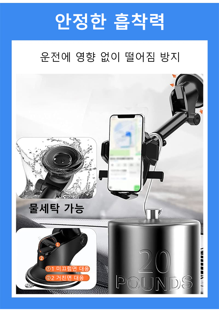 시선을 가리지 않음, 안전운전. 회전 잠금 설계, 강력한 흡착력, 안정성이 뛰어남.